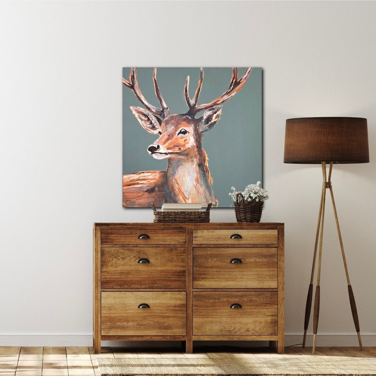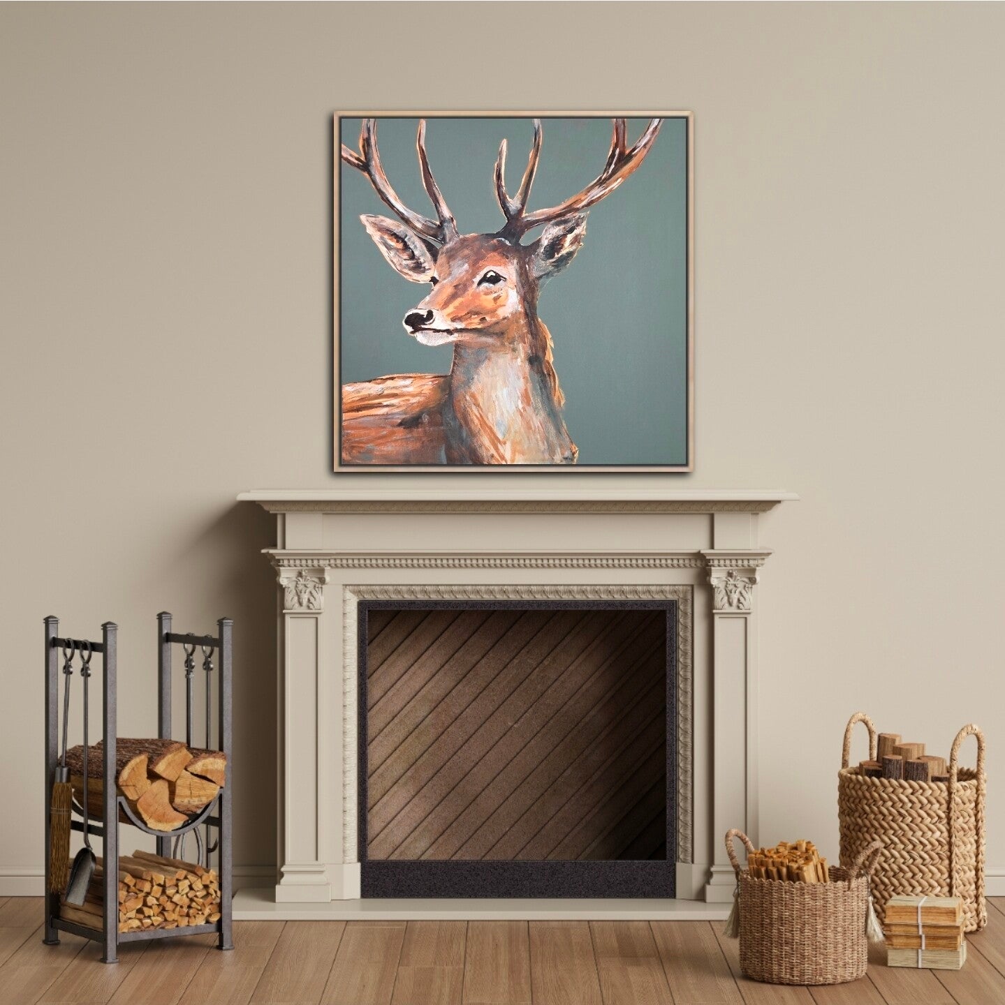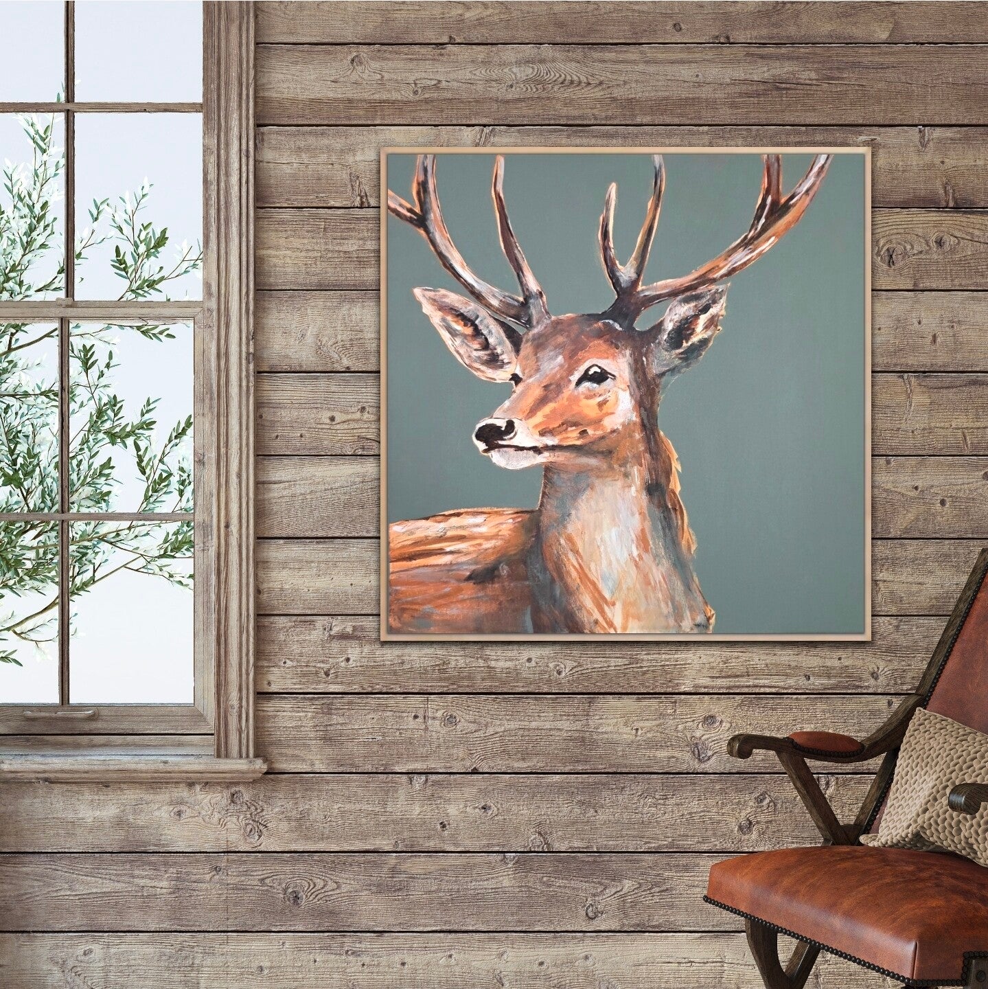 Capture the untamed spirit of the wild with this stunning original portrait. "The Stag" offers a perfect blend of rustic charm and modern elegance, featuring rich, warm tones that contrast beautifully against a serene, muted background. He's a statement piece that brings a touch of nature's majesty and a sophisticated focal point to any room. Ideal for the Southern buyer seeking original, hand-painted wall décor that brings the outdoors in!30x30 Acrylic on Gallery Wrapped Canvas