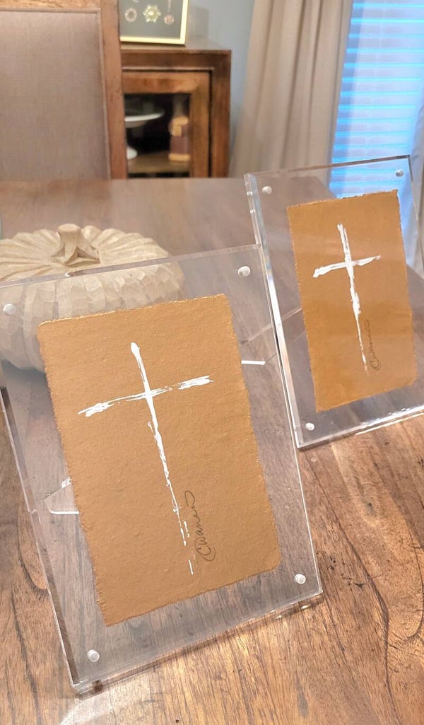Gold Deckled Edge Paper 4x6 with White Handpainted Cross